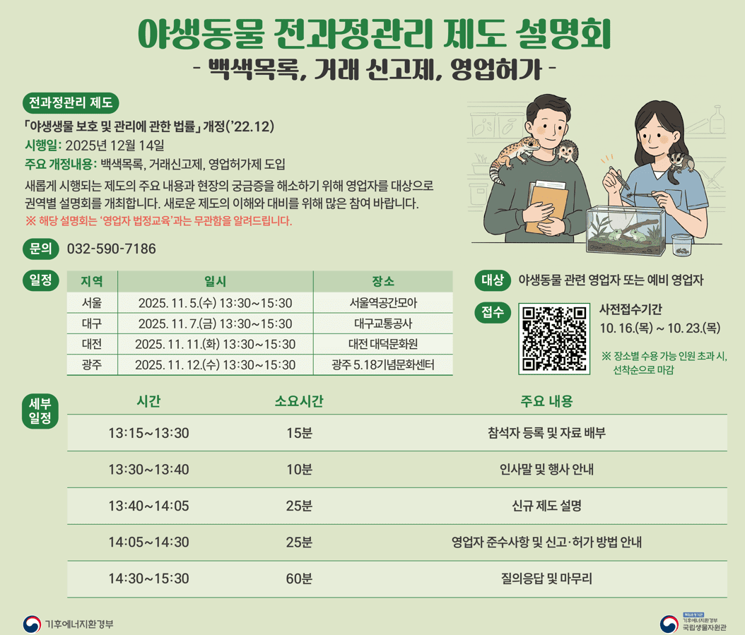 야생동물 전과정 관리 제도 설명회: 백색목록, 거래 신고제, 영업허가제